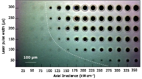Shown below is detail of matrix from 50-300µs pulse duration for different values of irradiance